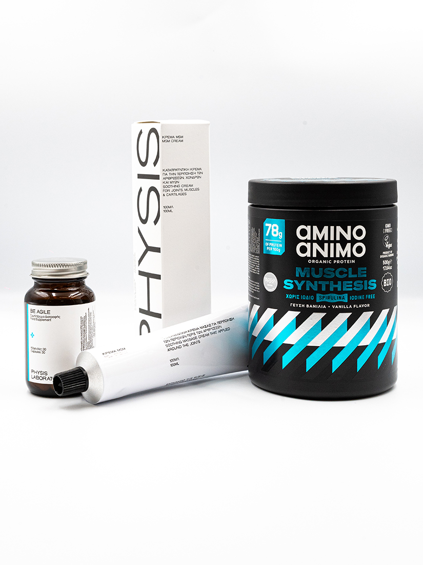 Ένα ολοκληρωμένο πακέτο για ενίσχυση της αθλητικής απόδοσης, προστασία των αρθρώσεων και μείωση φλεγμονών. Συνδυασμός της οργανικής πρωτεΐνης ΑΜΙΝΟ ΑΝΙΜΟ, κρέμα αρθρώσεων MSM και το συμπλήρωμα Be Agile για δύναμη, ευεξία και άνεση στην κίνηση.