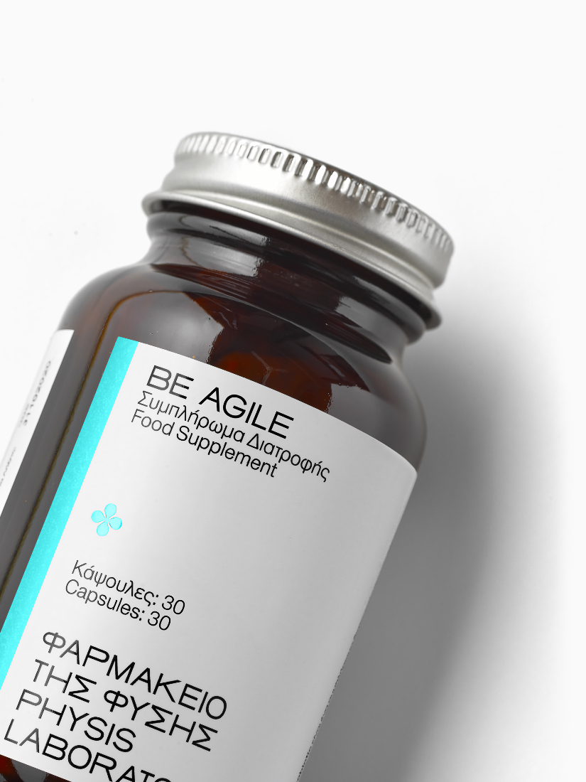 • Συμπλήρωμα διατροφής Be agile (30 caps) – Το Be Agile είναι ένα φυσικό συμπλήρωμα διατροφής με MSM και φυτικά εκχυλίσματα ινδικού λιβανιού, αρπαγόφυτου, τανατσέτου και εκουϊζέτου, που συμβάλλει στη σωστή λειτουργία των αρθρώσεων, ανακουφίζει από φλεγμονές και προάγει την ομαλή μικροκυκλοφορία του αίματος.